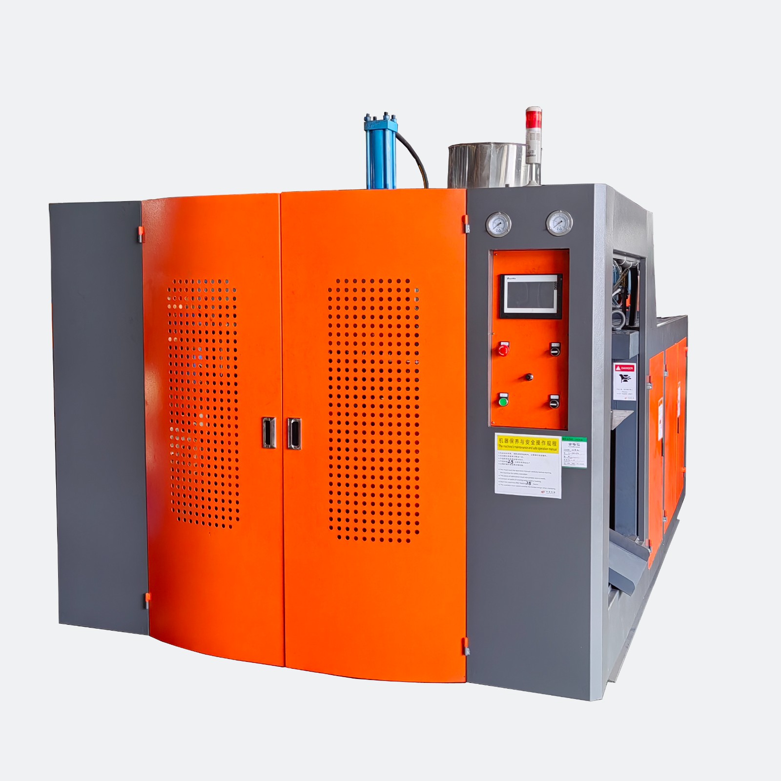 HT-70A全自動擠出吹塑機:是一步法,一次成型,液壓,全自動擠出吹塑機,自動切口,可吹制以PE、PP、AS等多種熱塑性塑料為原料的任何形狀的容量從5毫升到5000毫升的塑料中空容器。